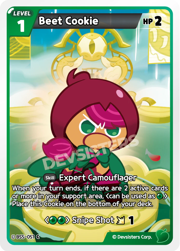 When your turn ends, if there are 2 active cards or more in your support area, Place this Cookie on the bottom of your deck.