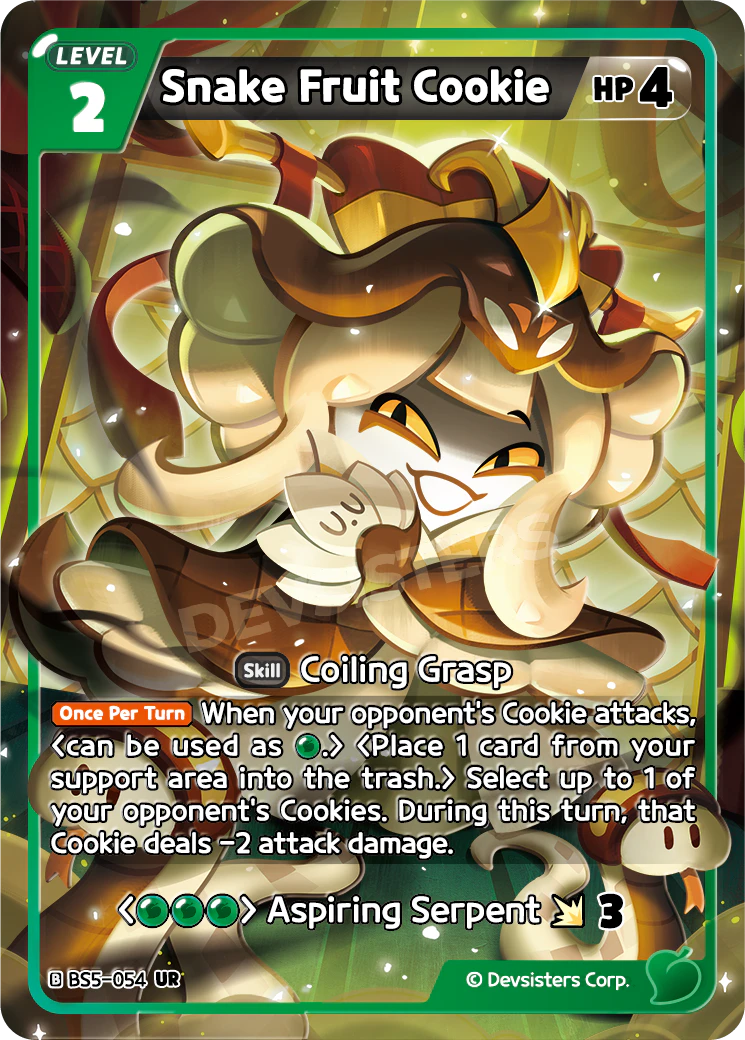 【Once Per Turn】 When your opponent's Cookie attacks, Select up to 1 of your opponent's Cookies. During this turn, that Cookie deals -2 attack damage.