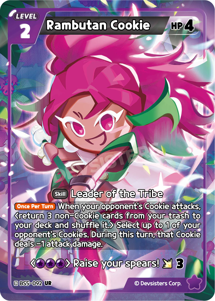 【Once Per Turn】 When your opponent's Cookie attacks, Select up to 1 of your opponent's Cookies. During this turn, that Cookie deals -1 attack damage.